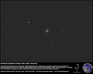 Two post‑perihelion images on Nov 5 show a compact bright source with no obvious dust tail, echoing July morphology, which is surprising beside reports of a measurable non‑gravitational push near the Sun.