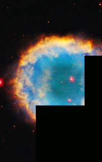 In another few thousand years, this material will be too thin to be seen. While we can observe it, we also find a glowing “halo” that surrounds the innermost ring of the nebula. It does not appear in this image, but it can often be seen in round planetary nebulae. A recent study of NGC 2438 showed that the halo in question is receiving ionizing radiation from the white dwarf at its center, which causes it to glow.