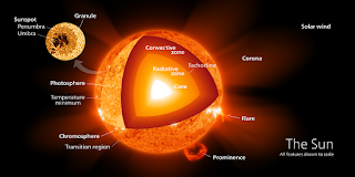 The corona – This is a layer of plasma that surrounds the Sun and other stars. This is the visible halo that we can observe in the Sun during a Solar eclipse. Additionally, the Solar wind (i.e., high-energy charged particles emitted from the Sun), originate in the Solar Corona.