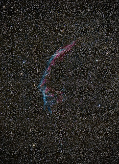 The Veil Nebula and its various components has accumulated a vast assortment of nicknames, some of the most famous of which include these: Cygnus Loop, Cirrus Nebula, Filamentary Nebula, Witch’s Broom Nebula, Bridal Veil Nebula, Finger of God, Network Nebula.