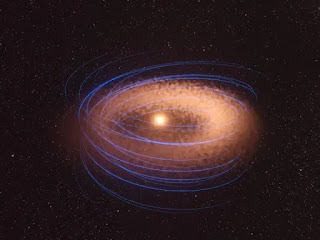 An illustration of the magnetic field structure in the protoplanetary disk surrounding HD 142527. Credit: ALMA (ESO/NAOJ/NRAO), S. Ohashi et al.
