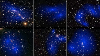 Six different galaxy clusters captured by the NASA/ESA Hubble Space Telescope. The clusters were observed in a study on the behavior of dark matter. Credit: ESA/Hubble, CC BY 4.0 <https://creativecommons.org/licenses/by/4.0>, via Wikimedia Commons