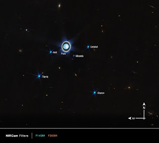 The James Webb succeeded in capturing 27 of Uranus’s moons, with the names of the six brightest ones included in the image.