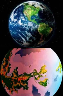 If I’m not mistaken, the green color of that planet is a continent like the one you see on our planet in the photos below. And the white color is a large mass of glacier, as on our planet at the North Pole and the South Pole there is a large mass of solid ice glaciers.
