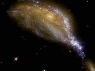 Image: Composite optical image of NGC 6745 taken with the Hubble Space Telescope. It was created using broadband optical filters centred at 336 nm (U-band, blue), 555 nm (V-band, green), and 814 nm (I-band, red).