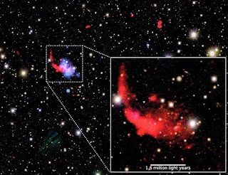 The galaxy cluster Psz2 G091.83+26.11 7 billion light-years from Earth. Credit: PanStarrs/NASA/Chandra/ Lofar/G. di Gennaro