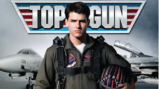 Top Gun movie poster with pilot in flight gear and F-14 Tomcat fighter jets in background