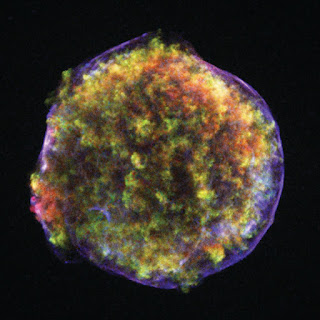 X-ray image of the remnant of Supernova 1572 (Tycho’s Nova), a Type Ia supernova observed as early as 1572 by the Danish astronomer Tycho Brahe.