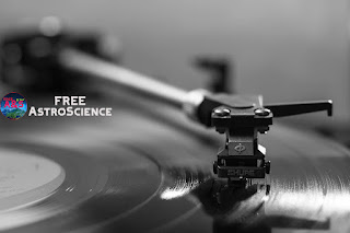 A close-up shot of a turntable needle playing a vinyl record, representing the nostalgic and high-quality sound experience of physical music formats. The "Free AstroScience" logo is visible in the corner.