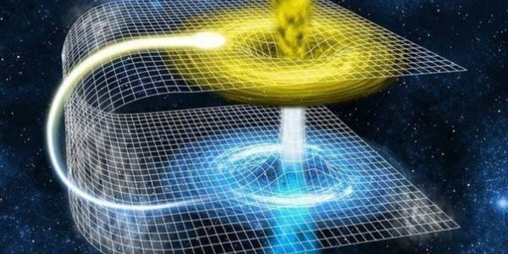 According to a mind-bending new theory, a black hole is actually a tunnel between universes—a type of wormhole. The matter the black hole attracts doesn’t collapse into a single point, as has been predicted, but rather gushes out a “white hole” at the other end of the black one, the theory goes.