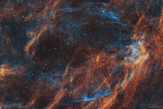 Image: Composite optical image of G82.2+5.3 taken with a small telescope. It was created using broadband filters (RGB), together with narrow-band filters that are focused on the emission of ionised oxygen ([O III], blue), ionised hydrogen (Hα, green), and ionised sulphur ([S II], red).