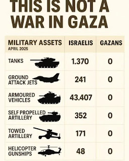 So, what do we take away from this? We’ve looked at data from April 2025, as presented in an image, which shows a significant imbalance in specific, heavy military assets between Israelis and Gazans. One side is depicted with substantial conventional military power in these categories, while the other is shown with none.