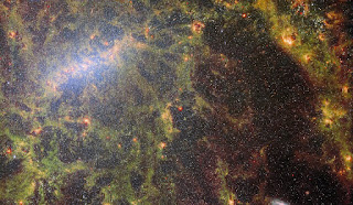 The intricate pattern of dust and bright star clusters in the image reveals the structure of the galaxy NGC 5068, with its bright central bar visible in the upper left of the image[. These observations hold immense value for astronomers, as they provide insights into the physics of plasma between stars and the evolution of entire galaxies.