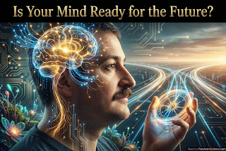Profile of man with glowing neural brain holding a compass toward futuristic roads. Text: Is Your Mind Ready for the Future?