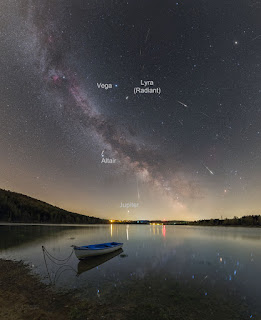 The radiant of the swarm, that is, the direction from which the meteors seem to come, is located in the constellation of Lira, a few degrees from the star Vega, as shown in the first image. To try to observe as many shooting stars as possible it is convenient then to look towards this direction.