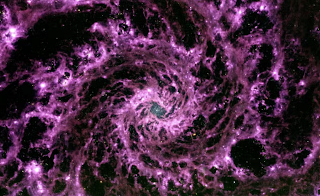 While the spiral arms of NGC 628 have been photographed before, Hubble Space Telescope images show them to be quite different from the purple spiral structure captured by Webb’s mid-infrared camera.
