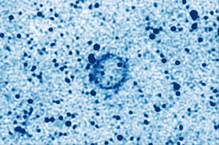 Even in the direction of a fairly densely packed part of the galaxy, the Kyklos ring stands out in this cleaned-up image of MeerKat’s L-band. Image Courtesy Of C. Bordiu (INAF)