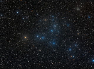 This beautiful cluster resides in the constellation Coma Berenices (Berenice’s Hair). It’s surprisingly close to us in cosmic terms! Thanks to precise measurements, including data from the ESA’s Hipparcos satellite, we know Melotte 111 is about 280 to 288 light-years away from Earth , .