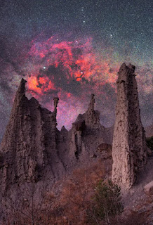The chimneys are framed by part of the Milky Way’s central disk, which appears glowing in the sky; it is not known exactly how many stars are present in our galaxy, but the best estimates put something close to 100 billion of them here. In case you’re wondering where we got in among so many stars, imagine this: if the Milky Way were a city, the Solar System would be in its suburbs, about 30,000 light-years from the center.