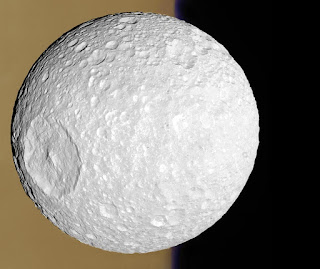 As seen in NASA, JPL, and SSI’s images, Mimas’ surface is heavily cratered, but none of the other craters come close to Herschel’s size. In the northern hemisphere, craters are no larger than 40 km, while those in the southern hemisphere are even smaller, measuring about 20 km in diameter.