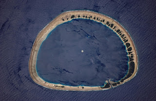 One of these is Nukuoro Atoll, photographed here in 2006. This islet is located in the Pacific Ocean and is part of the Federated States of Micronesia.