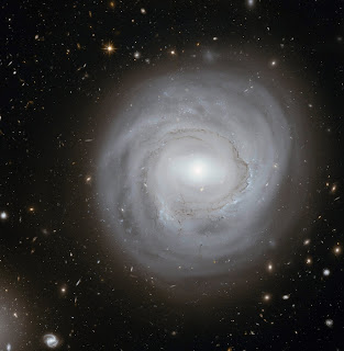 NGC 4921 is an excellent example of an anemic galaxy. These galaxies are characterized by a very low content of neutral hydrogen, an essential material for the creation of new stars. This results in a low star formation rate. Visually, anemic galaxies are characterized by a very diffuse structure, a low surface brilliance and virtually indistinguishable spiral arms.