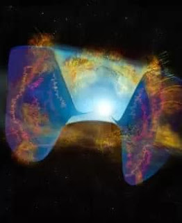 The black hole or neutron star’s orbit got closer and closer to its companion and, about 300 years ago, entered its atmosphere, starting the “dance of death.” At that point, the interaction began to spew gas from the companion into space. The ejected gas, spiraling outward, formed an expanding donut-shaped ring, called a torus, around the pair.