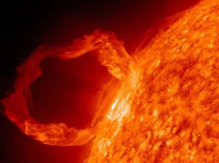 Solar prominences should not be confused with solar flares, which are rapid bursts of light and radiation emitted by entangled magnetic field lines near sunspots.