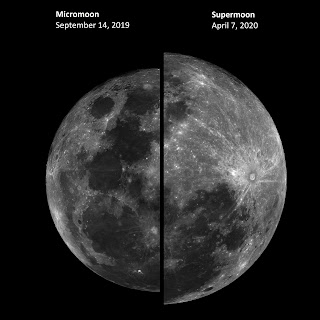 That said, it is virtually impossible to distinguish the difference in size between a Supermoon and a Micromoon with the naked eye. The only way to make a difference is to compare them in an image like this.