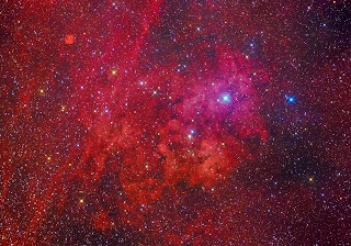 Image: Composite optical image of Sh2-115 taken with the ASA 12-inch Astrograph of the Irida Observatory in Southern Bulgaria. The image was created using broadband filters (blue-band, green-band, and red-band), together with a narrow band filter that is focused on the emission of ionized hydrogen (Hα). The small bright gas-blob on the top left side of the image was initially thought to be a planetary nebula, but now it is recognized as an emission nebula known as Sh2-116.