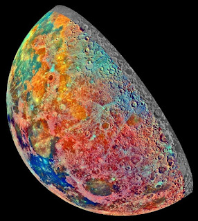 The NASA Galileo spacecraft took this false-color mosaic, constructed from a series of 53 images, as the spacecraft flew over the regions north of our Moon on December 7, 1992. The spacecraft was on its way to Jupiter.