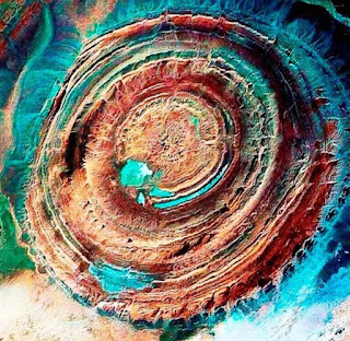 In the Sahara desert in Mauritania is the Richat structure, which with a diameter of almost 50 kilometers, forms a porthole in the expanse of the desert.