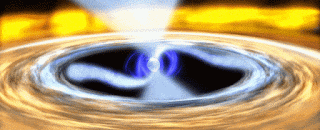 Spun into high rotation, these fields can speed up particles to ridiculously high velocities, creating polar jets that appear to ‘pulse’ like supercharged lighthouses.
