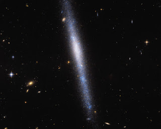 UGCA 193 presents a striking sight in the constellation Sextans, appearing as a mesmerizing cascade of stars when viewed from Earth. Unlike typical spiral galaxies, it lacks the characteristic dusty bands and features an unusually small yellow core. What makes this galaxy truly spectacular is its abundance of brilliant blue stars, creating an ethereal waterfall-like appearance.