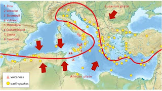 At the heart of the Po Valley lies the Mediterranean, sandwiched between the Eurasian and African plates. Visualize this geological ensemble through the map displayed above. It vividly depicts the dynamics at play, where the denser African plate is subducted beneath the lighter Eurasian plate, forming a subduction zone.