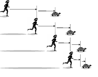 Zeno’s Paradox, a classical philosophical conundrum, focuses on the intriguing concept of relative motion. This paradox is beautifully depicted through a footrace between Achilles and a tortoise, where Achilles generously gives the tortoise a head start of 100 meters. Despite being faster, Achilles always finds himself where the tortoise once was, creating an infinite sequence of catch-up, making it seem impossible for him to overtake the tortoise.