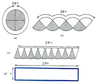 In this rectangle formed by our infinite pizza slices, the base measures 2πr and the height remains ‘r.’ Here lies the simplicity: the area of the rectangle, which sums up the areas of our two pizzas, equals 2πr multiplied by ‘r,’ or 2πr². Consequently, the area of a single pizza is half of this: πr².
