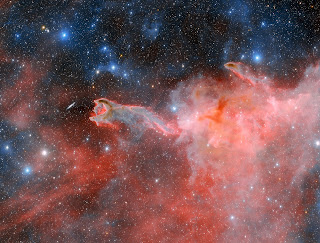 As we explore CG4 further, we discover that its ethereal glow is not merely a trick of the cosmic light. This star-forming region is illuminated by a nearby star, and its mesmerizing red hue at optical bands is possibly attributed to the presence of ionized hydrogen. The interplay between the illuminating star and the ionized gas creates a breathtaking spectacle that leaves observers in awe.