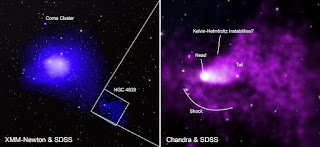 The Chandra X-ray Observatory (CXO), under NASA’s management, has detected the galaxy cluster NGC 4839, boasting an unprecedented tail length. Examining this formation is anticipated to offer deeper insights into the growth of galaxy clusters, which rank among the universe’s most colossal structures. Findings from this study were shared at the 242nd American Astronomical Society meeting in Albuquerque, New Mexico, and featured in the Monthly Notices of the Royal Astronomical Society’s June edition.