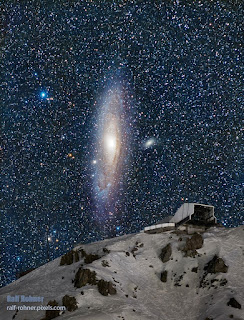 To create this awe inspiring result two different exposures were combined. The first one was a shot that captured the mountain and ski resort in the foreground giving the image depth and scale. The second exposure, which lasted longer played a role, in capturing the immense amount of light coming from the distant Andromeda Galaxy. This technique allowed us to not illuminate its brightly lit core. Usually all we can see through a telescope. But also reveal its outer regions that are often hidden in darkness.