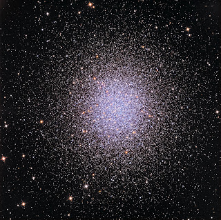 The Hercules Globular Cluster is home to hundreds of thousands of stars, with a concentration about 500 times greater in its core than in the region surrounding our Sun. In fact, the cluster’s center holds at least 100 stars within each cubic volume spanning three light years.