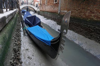 TO the last surveys, Venice is in “dry” as a result of a low tide that is beginning to provoke serious problems to the navigation and that it would have to continue at least until the next Tuesday.  The inner canals have become muddy streets, the boats are moored dry, the ancient foundations of the buildings can be very well viewed, even along the Grand Canal.
