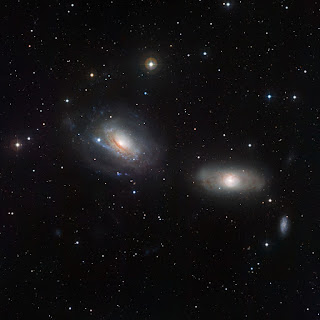 Interacting galaxies are galaxies whose gravitational fields result in a disturbance of one another.