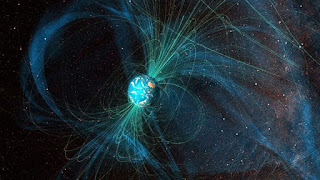 Why Venus does not have a global magnetic field? – It spins very slowly, little convection of its molten interior. According to Magellan and Express spacecrafts data Venus should have a iron- nickel liquid core, which does not circulate. The only magnetic field Venus may have comes from the interaction between Venus’s upper atmosphere and the solar wind, which causes electric currents to flow, thus is created a weak magnetic field. Mars spins quickly, but has a solid core, and has a weak magnetic field. Earth has a liquid iron-nickel core and spins quickly and has a strong magnetic field. The four gas giants have extremely strong magnetic fields. Jupiter and Saturn have a large amount of hydrogen gravitationally super- compressed, liquid hydrogen. Some of this hydrogen is in a state that some of the electrons are squeezed out of atoms and free to move around. A moving charge will produce a magnetic field. A planetary magnetic field forms a shield protecting the planet’s surface from energetic, charged particles coming from the Sun and other places. The Sun is constantly sending charged particles, called the solar wind into the solar system. The magnetic field prevents the planet’s atmosphere from blowing away.
