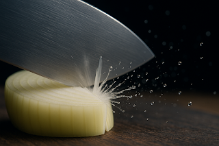 A sharp knife (with a tip radius around 0.91 micrometers in the study), on the other hand, slices cleanly through the onion’s layers with less force. This minimizes the crushing and pressure buildup. Because the cut is cleaner and less traumatic to the onion’s structure, fewer cells are ruptured violently, leading to a significantly reduced number of those tear-inducing droplets. The droplets that are produced also tend to be ejected with less energy and speed.