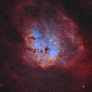 Image: Composite optical image of the Tadpole Nebula taken with a small amateur telescope. It was created using broadband filters (RGB), together with narrow band filters focused on the emission of ionised oxygen ([O III]), ionised hydrogen (Hα), and ionised sulphur ([ SII]). Image Credit: Garry Mark Germani